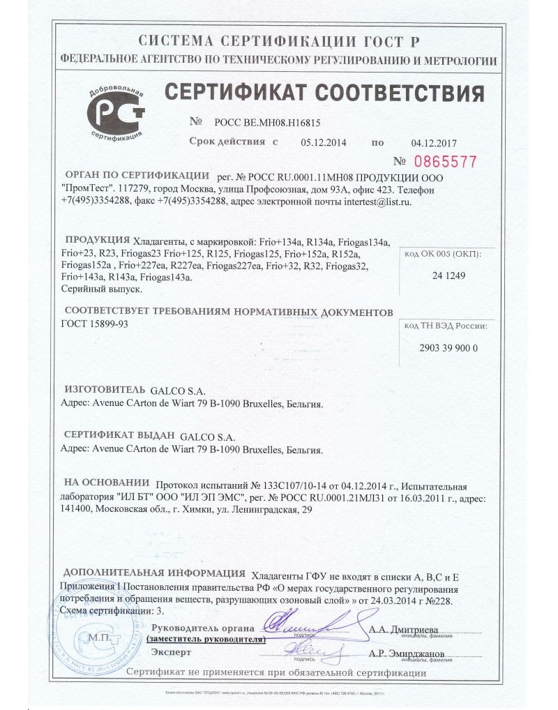 - R23 — для охлаждения до сверхнизких температур.